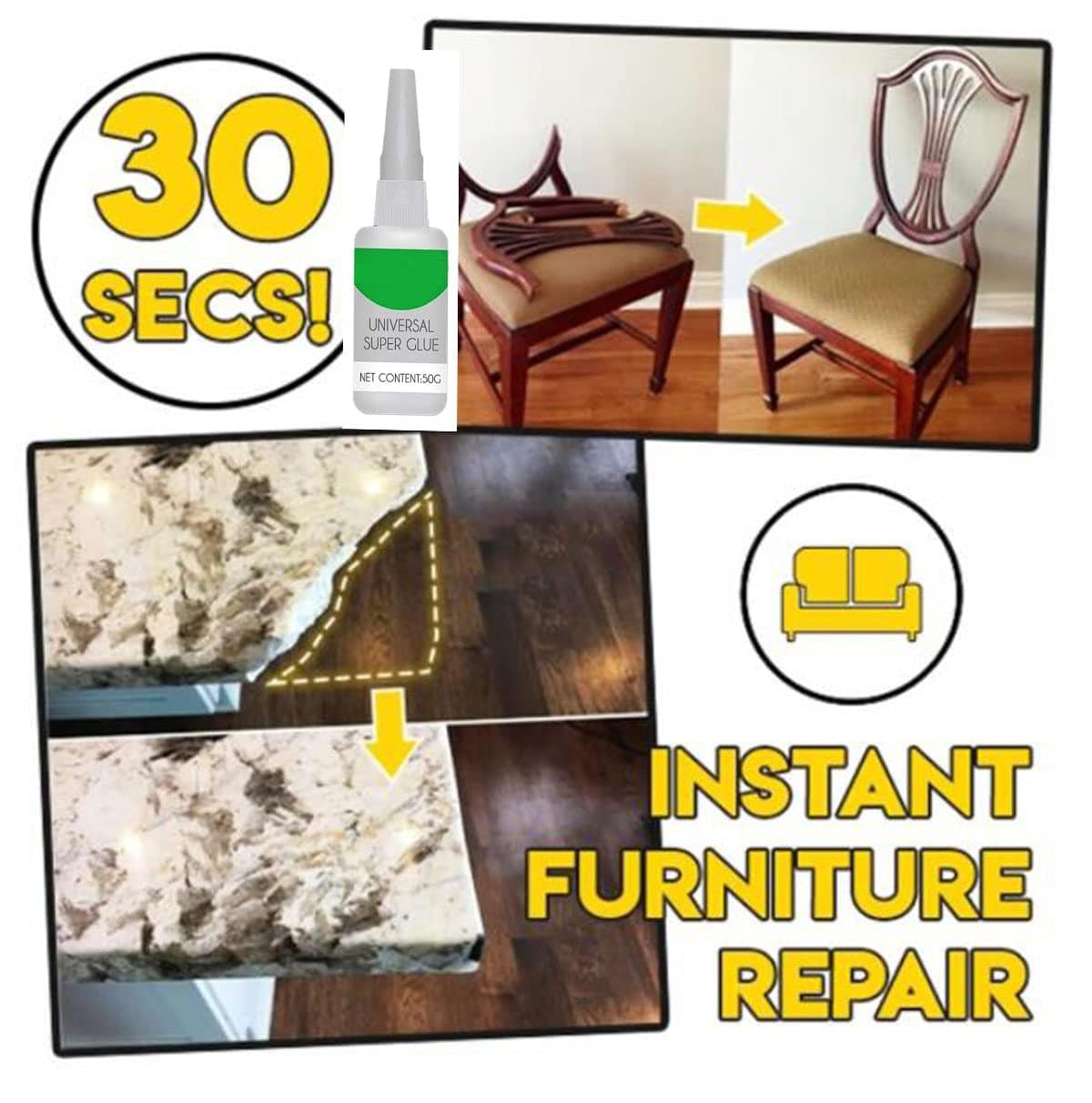 We are happy to offer you a super adhesive glue that is a must have to your home. Introducing Bondmaxo™️, a super strong adhesive and fast drying glue that has a low thickness making it easy to blend to the items or surfaces that needed to be glued.